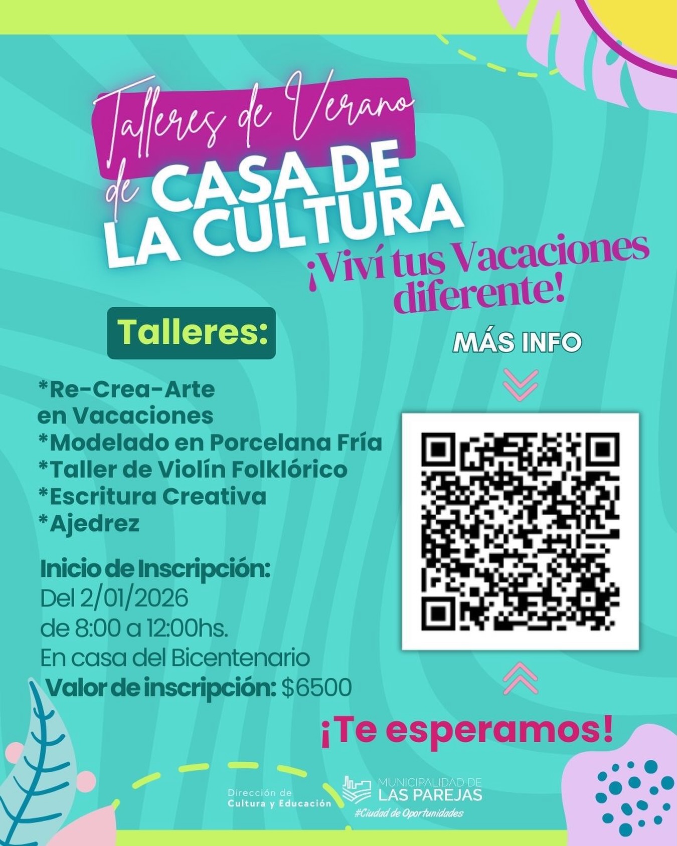 Abren las inscripciones a los Talleres de la Casa de la Cultura Municipal!